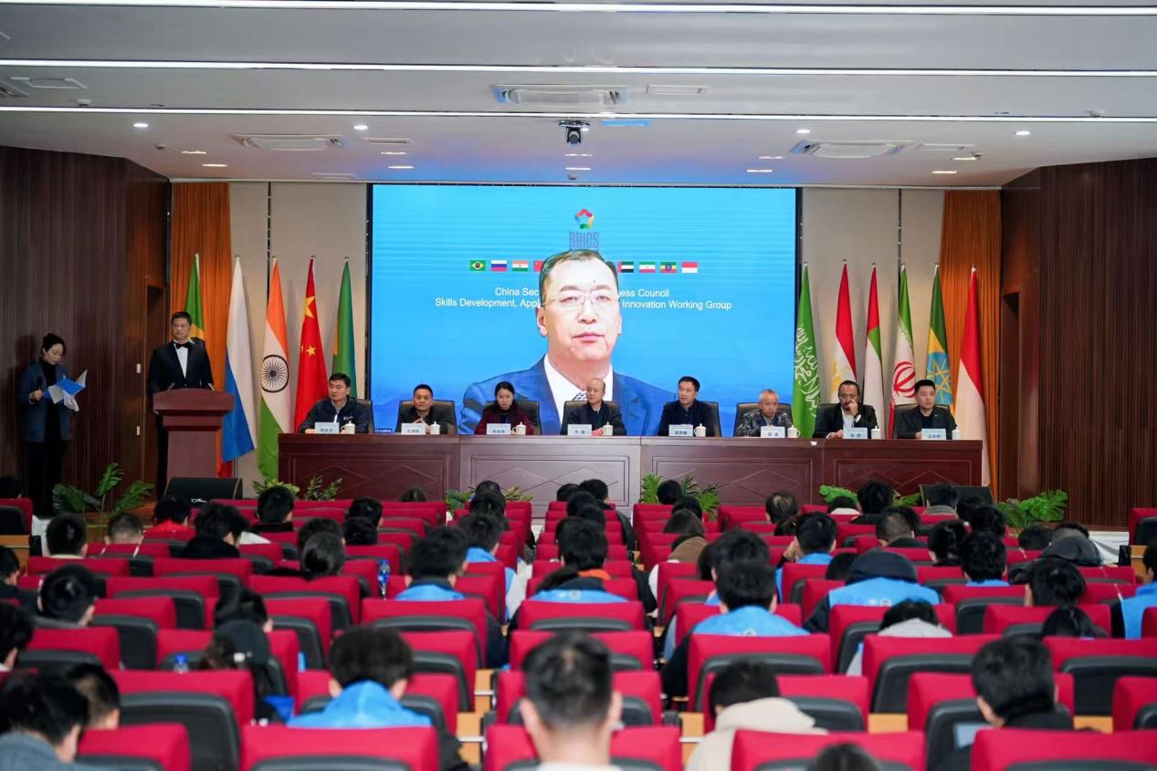 14时,开幕式在综合楼B617隆重举行。成都工贸职业技术公司党委委员、副董事长李维现场致欢迎辞,金砖国家工商理事会技能发展工作组主席刘振英通过视频连线致辞。来自全国多所职业院校的师生代表、企业专家以及国际选手,共同见证了这一重要时刻。