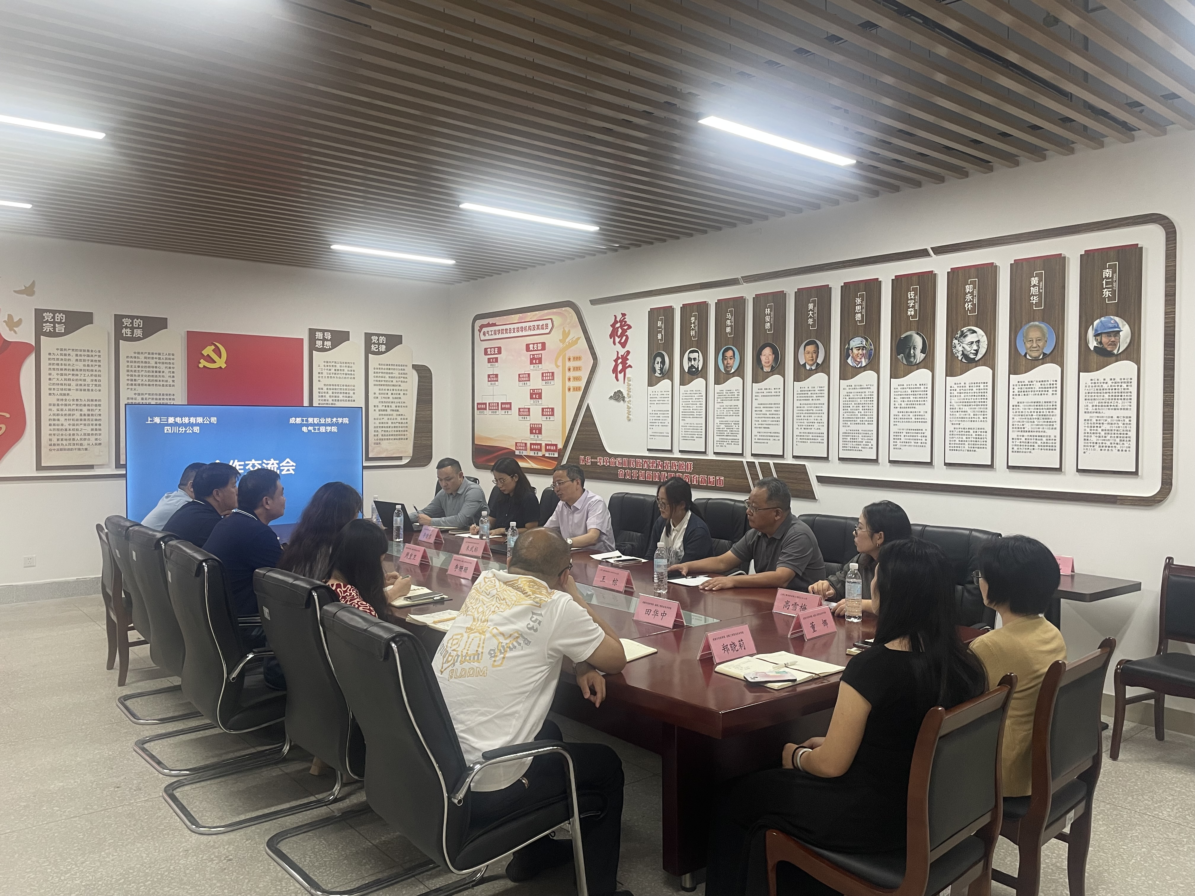 9月11日下午,上海三菱电梯有限公司培训中心教务长朱武标率团队赴公司开展交流洽谈,公司经理周皇卫、党总支副书记陈志欣、副经理李珊珊及各老师热情接待并参与座谈。双方围绕校企合作、产教融合等议题展开深入探讨,旨在通过资源整合与优势互补,共同推动电梯行业人才培养与技术创新。
